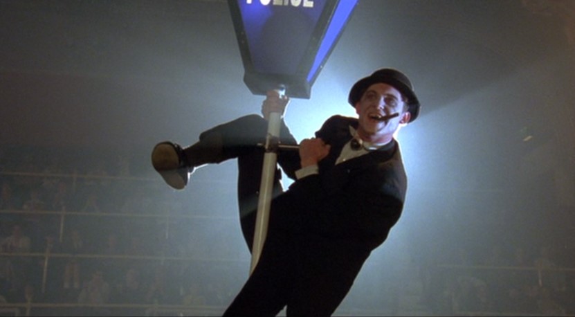 Freud tussled with grammar to try to understand how jokes work but got no closer to understanding why we laugh. Chelsom (like Freud) distinguishes between the joker who ‘tells funny’ and the clown who ‘is funny’. Freud, who enjoyed a good joke, would appreciate the psychodrama of Tommy Fawkes’ yearning to escape from his father’s shadow. Tommy chafes against the constraints of stand-up with it’s saleable, designer gags. His lavish Vegas debut ends disastrously when he compromises the fragile relationship between the comic and his audience, provoking rather than pandering to their expectations with more ‘appropriate’ material. Returning to Blackpool he finds a wellspring of comic invention in Jack Parker, who, like the great vaudevillians and music hall stars repurposes popular culture for comic effect. Jack’s exhilarating routine plays like a pop art collage by Peter Blake with a nod to Andy Kaufman’s ‘Mighty Mouse’, a mash up of kitsch americana that includes snatches of radio and fifties pop; this found soundtrack enhances Evans’ formidable talent for mimicry and physical comedy. This dazzling performance delights his audience, far removed from the glacial hostility and forced smiles of Tommy’s Vegas debacle. Like Tommy, Jack is also trapped by his past; he teeters constantly between comedy and catastrophe. Whether seeking refuge on the top of a swaying mast or besieged at the pinnacle of Blackpool Tower the world is always closing in around him. His chaotic existence breeds unpredictable comedy that threatens to turn into horror in a moment. Like all the best clowns (and small children) Jack can be innocent, vulnerable, and frightening at the same time. He is a cursed and privileged figure; like the court jester whose bad joke or off-colour remark could prove fatal. Clowning celebrates reversal, the freedom of carnival or saturnalia where anyone can be king for a day, except the king himself. At the film’s climax Jack is enthroned as the Lord of Misrule but a palpable sense of tension keeps the audience guessing as to whether Jack’s performance will end in triumph or tragedy.